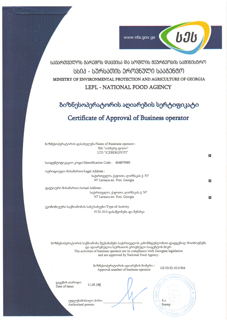 ბიზნესოპერატორის აღიარების სერთიფიკატი